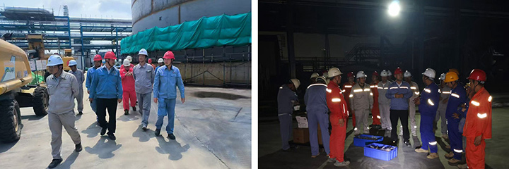 五一假期期間,揭陽巨正源科技公司領(lǐng)導(dǎo)帶領(lǐng)值班團(tuán)隊(duì)深入一線,慰問節(jié)日期間加班奮戰(zhàn)的員工,走訪了門衛(wèi)崗?fù)ぶ凳厝藛T、110kV變電站值班人員、醋酸及原料罐區(qū)施工團(tuán)隊(duì)及監(jiān)理人員,為他們送去牛奶、面包等慰問品,并致以節(jié)日的問候與誠摯的感謝。公司領(lǐng)導(dǎo)鼓勵員工們繼續(xù)發(fā)揚(yáng)拼搏精神,堅(jiān)持安全第一、質(zhì)量至上、高效收尾,為項(xiàng)目高標(biāo)準(zhǔn)投產(chǎn)保駕護(hù)航。領(lǐng)導(dǎo)的關(guān)懷和鼓勵,讓一線員工倍感溫暖和振奮,大家紛紛表示將站好每一班崗,全力以赴完成項(xiàng)目建設(shè)任務(wù)。