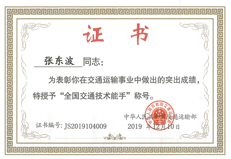近日,東莞市盛源石油化工有限公司操作部員工張東波同志被交通運輸部授予“全國交通技術能手”稱號,獲頒“全國交通技術能手”證書。